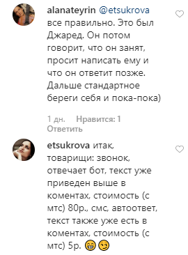 Впоследствии выяснилось, что номером телефона, который предоставил музыкант, управляет бот. Он шлет в ответ поклонникам одинаковые фотографии, а на звонок отвечает автоответчик. К тому же, звонки оказались платными.