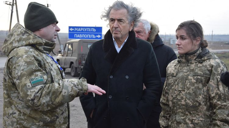 На линию разграничения на Донбассе приехал французский писатель и философ Леви. Фото
