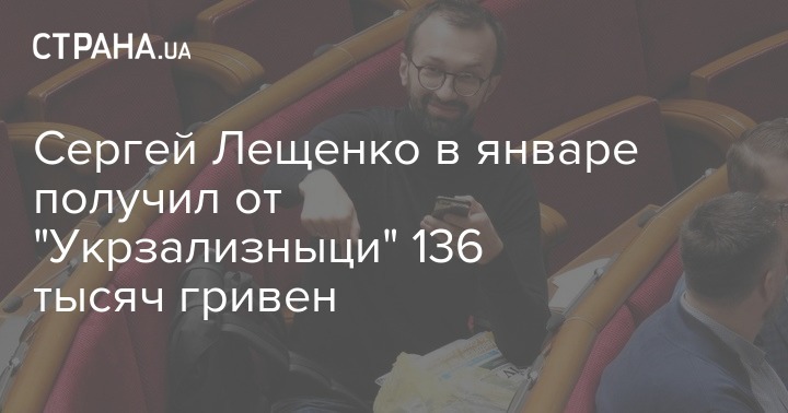 Экс-нардеп Верховной Рады от "Блока Петра Порошенко", а ныне - член наблюдательного совета "Укрзализныци" Сергей Лещенко, в обязанности которого входит обучение руководства и работников госпредприятия этическому поведению и борьба с коррупцией, заработал 136 тысяч гривен за январь.