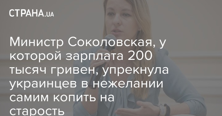 Министр Соколовская, у которой зарплата 200 тысяч гривен, упрекнула украинцев в нежелании самим копить на старость