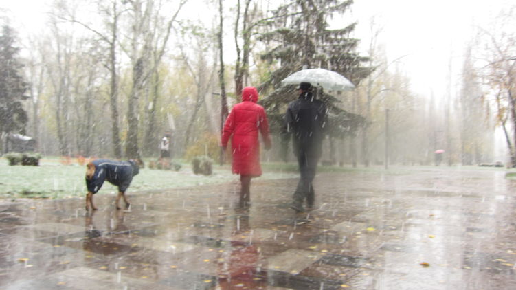 "Киев вошел в зону атмосферного фронта. Пока - дождь, дальше вероятный мокрый снег", - сообщила Наталья Диденко.