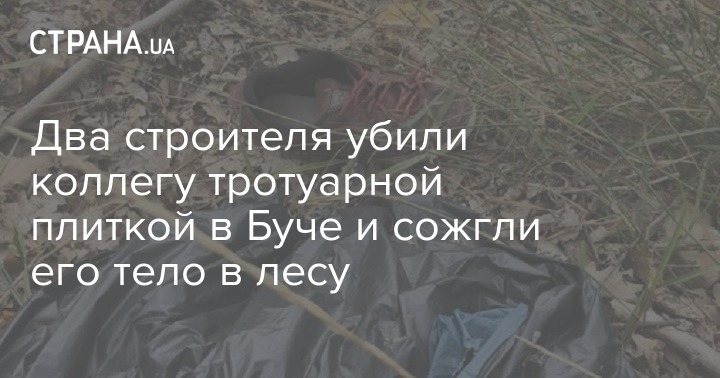 Прокуратура Киевской области передала в суд обвинительное заключение в отношении двух лиц, которые подозреваются в убийстве своего коллеги в Буче Киевской области в июле 2019 года. Вначале двое мужчин на почве ссоры избили до смерти своего обидчика, после чего вывезли его тело в лес, подожгли и закопали, чтобы спрятать улики преступления.