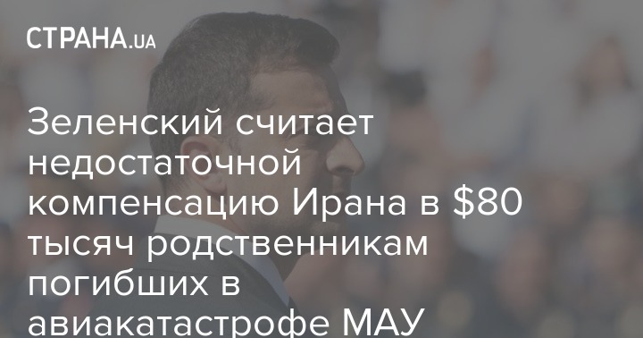 Президент Украины Владимир Зеленский назвал сумму компенсации в размере 80 тыс. долларов от Ирана семьям погибших в результате крушения самолета "МАУ" возле Тегерана недостаточной.