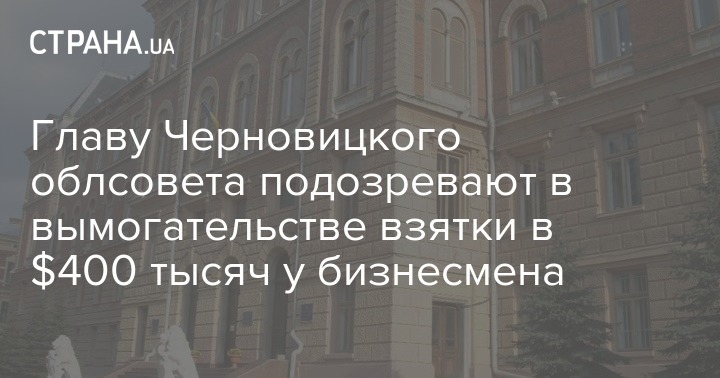 Председателю Черновицкого областного совета правоохранители сообщили о подозрении в требовании 400 тысяч долларов взятки и получении части этой суммы (180 тысяч долларов) от местного предпринимателя, против которого также открыто уголовное производство.