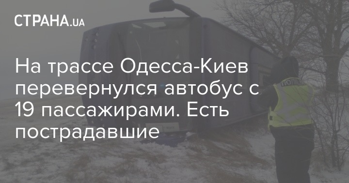 Водитель рейсового автобуса Одесса-Киев из-за сложных погодных условий потерял контроль над транспортом из-за скользкой дороги. В перевернувшемся автобусе находилось 19 человек, двое из которых - 37 летняя женщина и 9-летний ребенок - получили телесные повреждения. Об этом сообщает пресс-служба правоохранителей в Одесской области.