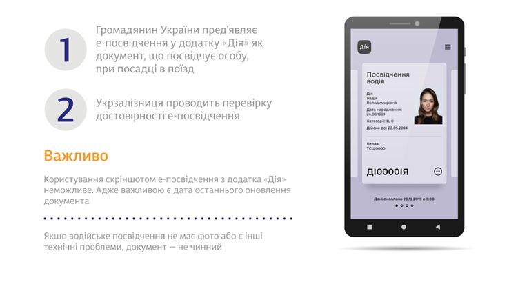 После презентации государственного мобильного приложения "Дія" ("Действие") Укрзализныця заявила, что украинцы смогут совершать посадку в поезд на основании электронного водительского удостоверения.