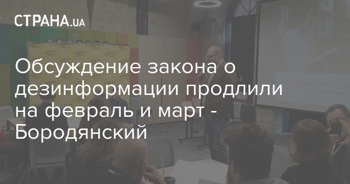 "Мы продолжаем обсуждение, это является не законом, а законопроектом, он не зарегистрирован в Раде. Он специально вынесен для обсуждения с громадой, для того, чтобы сделать этот закон совершенным, для того, чтобы он защищал информационное пространство и не мог использоваться для ущемления свободы слова. Поэтому продолжаем обсуждение, оно будет продолжаться около 2 месяцев, весь февраль и март", - сказал Бородянский.