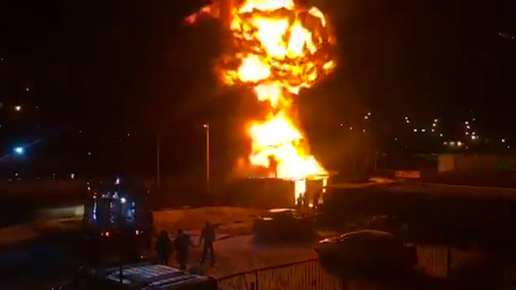 Вызов в ГСЧС поступил 7 февраля в 19:10. Когда пожарные приехали на месте, все здание уже горело. Во время тушения произошел взрыв из-за которого пострадал пожарный. Предварительно, взорвалась бочка с горюче-смазочными веществами.