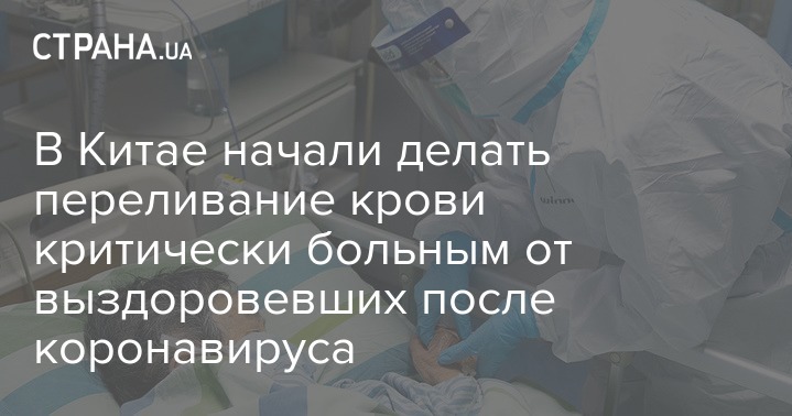 В Китае начали делать переливание крови критически больным от выздоровевших после коронавируса