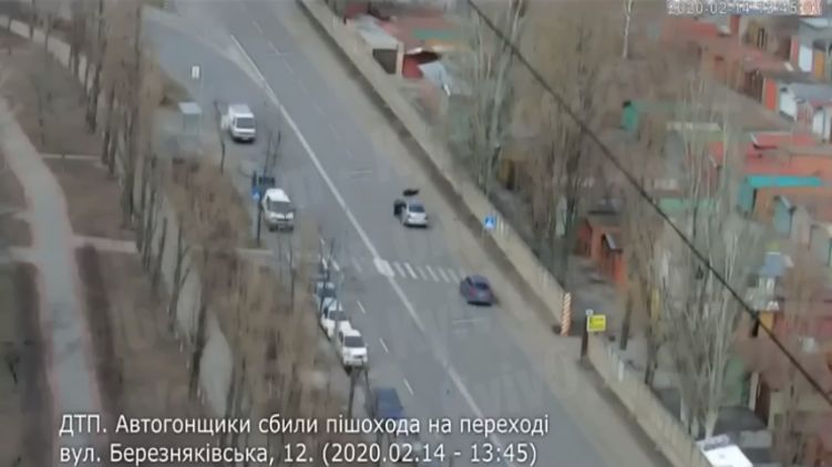 Появилось видео, как в Киеве на огромной скорости автогонщики сбили пешехода на переходе