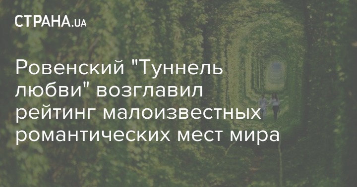 "Туннель любви", расположенный в Ровенской области в Украине, возглавил рейтинг наименее известных романтических мест мира. Кроме него, в список вошла статуя Али и Нино в Батуми, деревья любви в Москве и Волнорез в Пярну (Эстония).