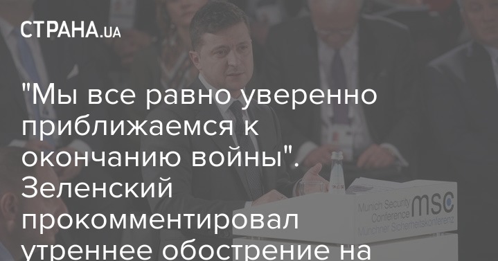 По словам Владимира Зеленского, прошедший 18 февраля бой на Донбассе не изменит его курс на прекращение войны. "У нас было заседание СНБО. Были и другие вопросы. Мы начали с провокации на контактной линии. Хочу вам сказать, что у нас мощная армия. Провокации бывают. Армия мощно ответила. Но, несмотря на это, я хочу вам сказать, что ситуация полностью контролируется. И мы уверены, что эта провокация не изменит курс. Потому что только с сильной армией можно садиться за стол переговоров. Курс - мы идем, уверенно приближаемся к прекращению войны и миру", - сказал он на брифинге в Офисе президента.