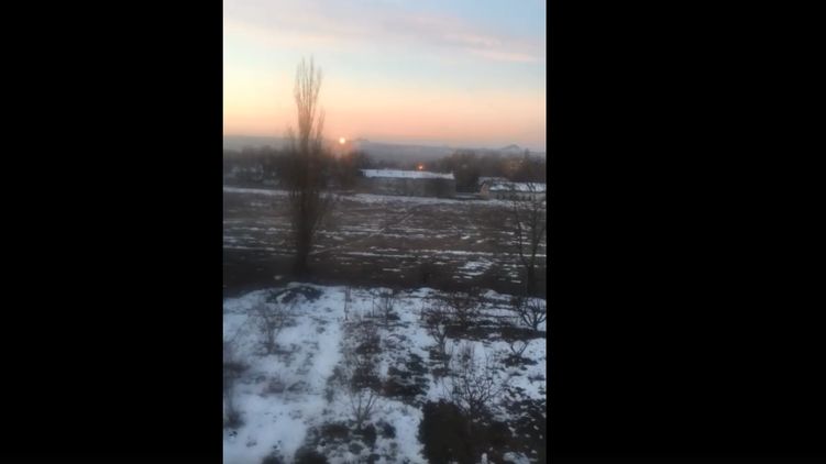 На опубликованном видео видно, как летят снаряды, вероятно, в сторону позиций украинской армии. Голоса за кадром принадлежат местным жителям. "Вон, полетел еще", - комментирует юноша по имени Даня, а его мама просит его отойти от окна.