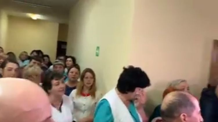 На записи видно, как одна из медсестер плачет во время сточки "Душу й тіло ми положим за нашу свободу".