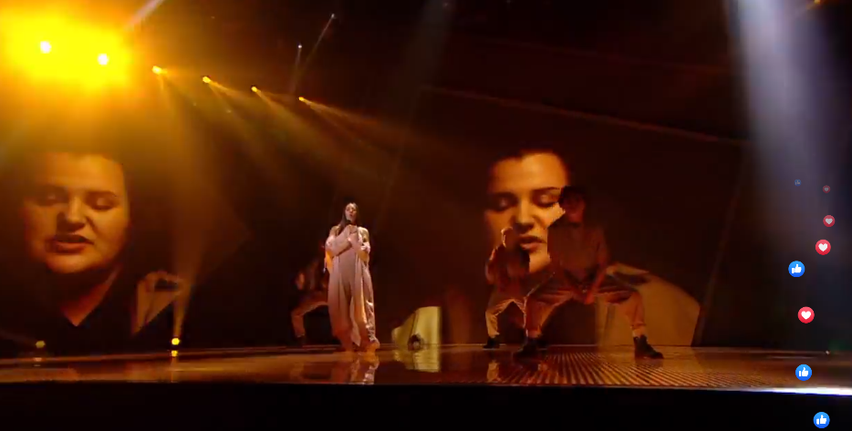 20:24 После выступления зал аплодирует. Вокалистка Екатерина Павленко говорит, что музыканты осознанно выбрали украинский язык для песни, потому что он должен звучать со сцены Евровидения