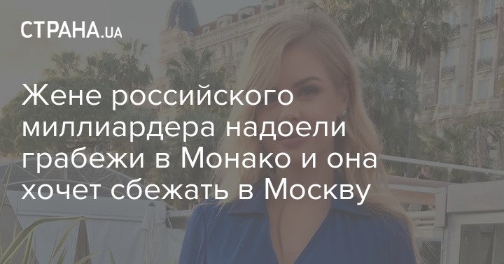 Жене российского миллиардера надоели грабежи в Монако и она хочет сбежать в Москву