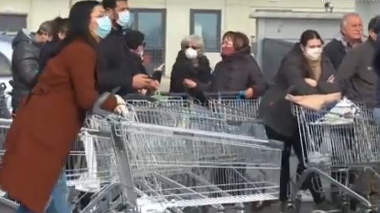 В северных регионах Италии, где отмечена вспышка коронавируса, началась паника. Люди разметают продукты в супермаркетах.