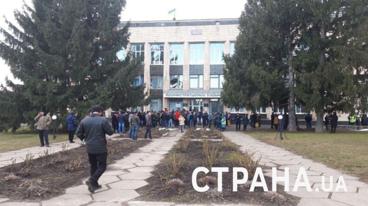Протест в Новых Санжарах 20 февраля. Фото: strana.ua