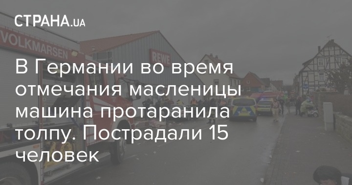В немецком городе Фолькмарсен во время проведения карнавала в Розенмонтаг (последний день масленицы) в толпу людей врезалась машина. Пострадали 15 человек, среди них есть дети.