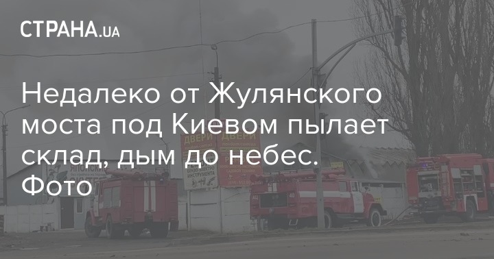 Недалеко от Жулянского моста под Киевом пылает склад, дым до небес. Фото