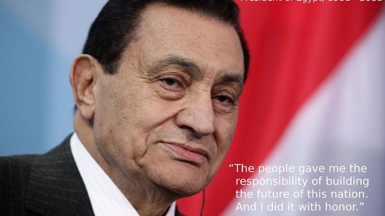 Как известно, Хосни Мубарак находился у власти в Египте с 1981 года. Его свергли с поста президента во время протестов «арабской весны» 2011 года. После отстранения от власти он шесть лет провел в заключении. Его обвиняли в убийстве сотен протестующих в ходе «арабской весны» 2011 года. Сам Мубарак отрицал, что приказывал стрелять по протестующим. В 2012 году его приговорили к пожизненному заключению, но в марте 2017 года оправдали, после чего он вышел на свободу.