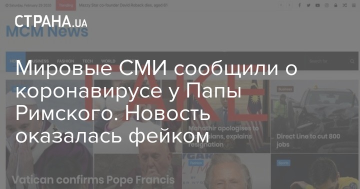 Сегодня появилась новость, что Папа Римский слег с высокой температурой. Но некоторые СМИ интерпретировали это как то, что он болен коронавирусом.
