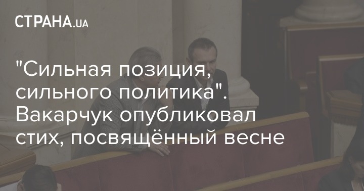 Бывший лидер группы "Океан Эльзы", а сейчас народный депутат и парламентской фракции "Голос" Святослав Вакарчук на своей странице в микроблоге Twitter в первый день весны опубликовал короткий стих, посвященный весне. Пользователи иронично назвали это выражением позиции сильного политика.