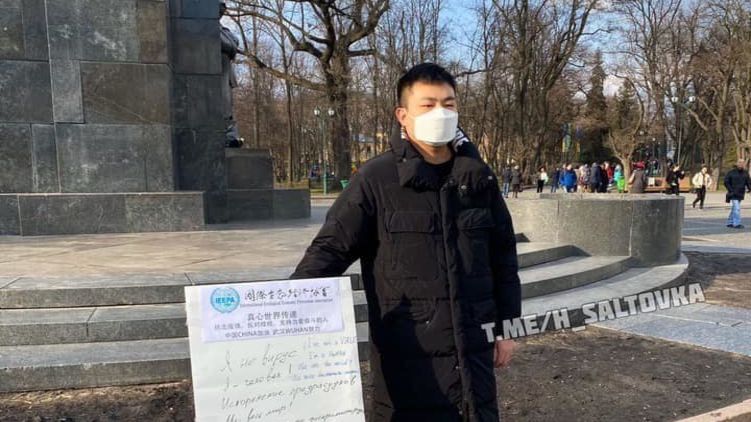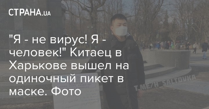 В центре Харькова в городском саду Шевченко китаец вышел на одиночный пикет против предрассудков. Он обеспокоен тем, что в мире ассоциируют китайцев с заражением коронавирусом.