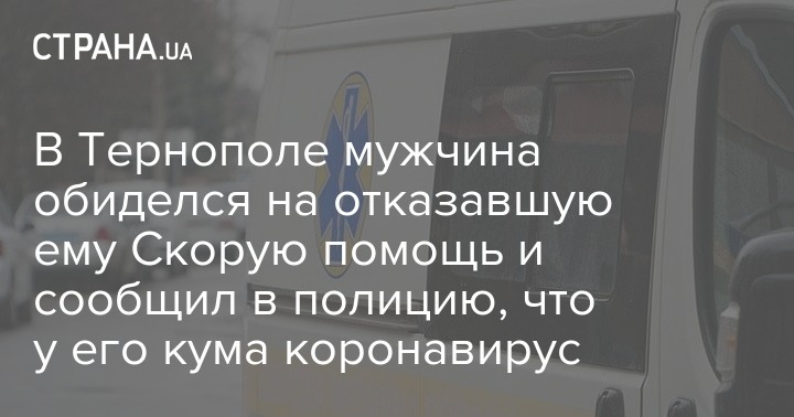 В Тернополе мужчина обиделся на отказавшую ему Скорую помощь и сообщил в полицию, что у его кума коронавирус