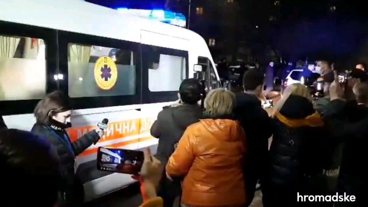 Женщину увозят в больницу на "скорой". Фото: twitter.com/HromadskeUA