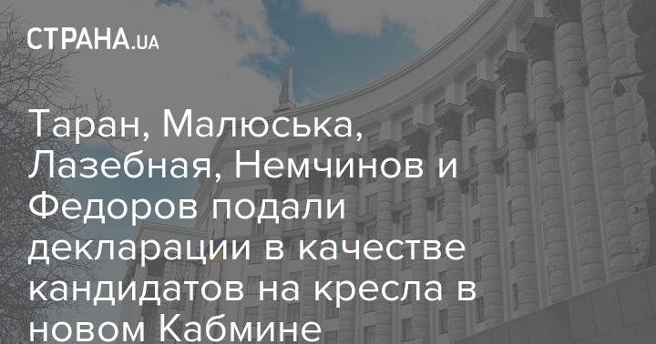 Андрей Таран, Денис Малюська, Марина Лазебная и Олег Немчинов подали электронные декларации в качестве претендентов на должности в обновленном Кабинете министров Украины.
