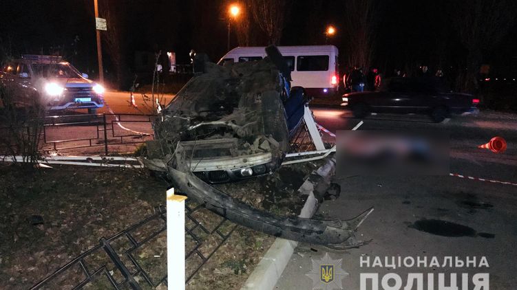 В Кременчуге Полтавской области пьяный водитель на BMW устроил смертельное ДТП. Он не справился с управлением, влетел в бордюр, авто перевернулось. Пассажир машины погиб на месте в результате ДТП.