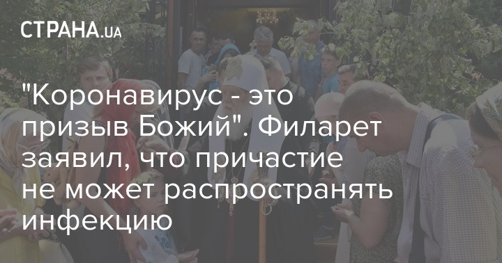 "Коронавирус - это призыв Божий". Филарет заявил, что причастие не может распространять инфекцию