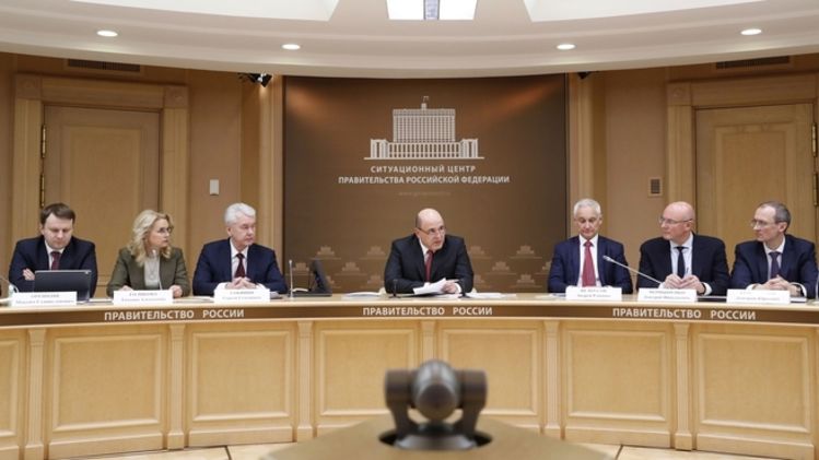 Координационный совет РФ по борьбе с коронавирусом. По центру - премьер Михаил Мишустин. Фото с сайта правительства