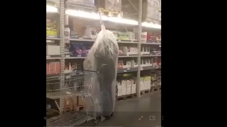 В маркетах Украины замечены ходячие вигвамы и люди в противогазах. Видео