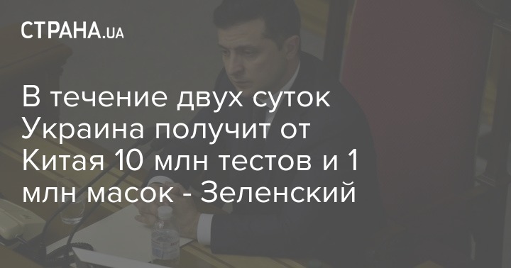 В течение двух суток Украина получит от Китая 10 млн тестов и 1 млн масок - Зеленский