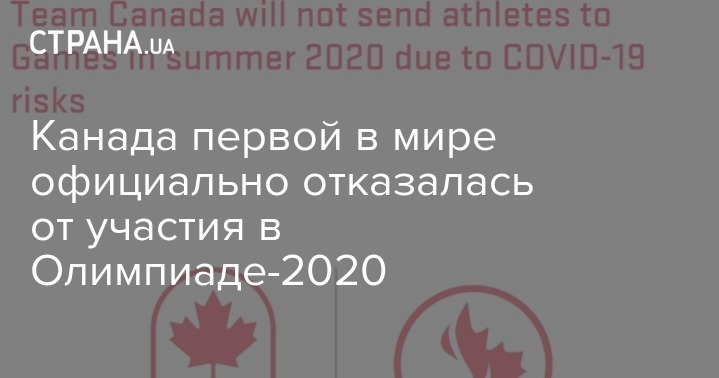 Канада первой в мире официально отказалась от участия в Олимпиаде-2020