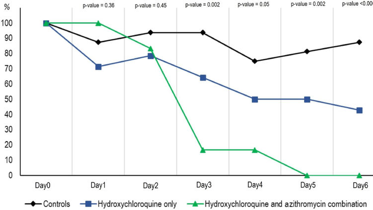 Интересно и то, что одна пациентка, получавшая только гидроксихлорохин, и не излечившаяся, на восьмой день исследования начала принимать азитромицин, а на девятый день ее пробы на вирус были уже отрицательными.