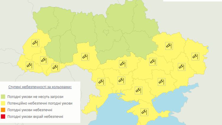 Так, сильный ветер ожидается в южных, восточных, большинстве центральных областей и Карпатах. Порывы ветра, прогнозируемые синоптиками, соответствуют І уровню опасности - "желтому".
