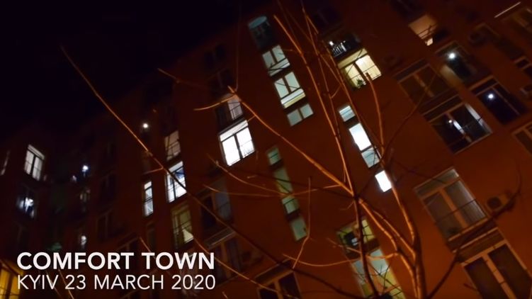 Как утверждается в подписи к ролику, в акции приняли участие жители "Комфорт Тауна", дома 13к. Таким образом киевляне продолжили традицию пения в своих домах, начатую гражданами европейских стран, которые находятся в условиях карантина.