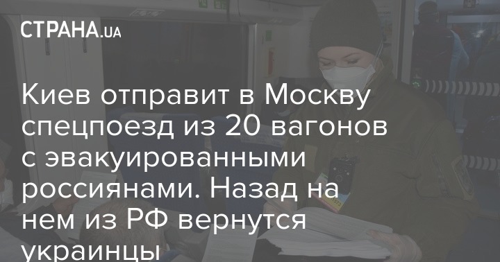 Сообщается, что специальный состав "Укрзализныци" прибудет в российскую столицу в субботу, 28 марта. В то же время в Москву из Украины поездом приедут граждане России, пожелавшие возвращения домой. Состав будет состоять из 20 вагонов и сможет вывезти около 500 украинцев.