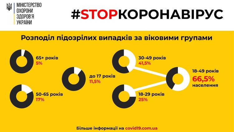 Украинцы от 18 до 49 лет занимают более половины всех зафиксированных подозрений на коронавирус в стране.