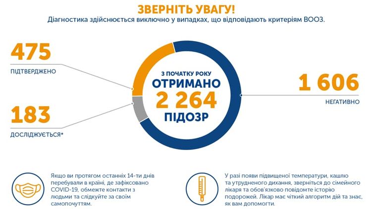 В Украине зафиксировано 475 случаев коронавирусной болезни COVID-19. Десять чеоовек в Украине погибли от осложнений болезни. Шесть случаев закончились выздоровлением.