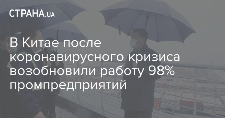 В Китае, где уже объявили об окончании эпидемии коронавируса, на 98,6% базовых промышленных предприятий уже восстановили нормальный производственный цикл и почти 90% рабочих и служащих вернулись на рабочие места.