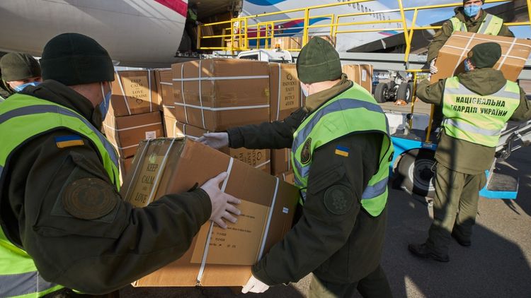Грузовой самолет прибыл в международный аэропорт "Борисполь" (Киев). После прохождения всех санитарных и таможенных процедур груз распределят в больницы и лаборатории во все регионах Украины.