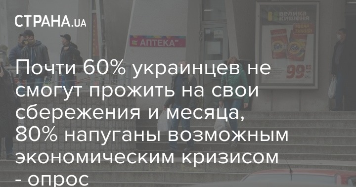 Больше половины украинцев не смогут прожить на свои сбережения и месяца в случае утраты источника дохода (зарплаты или пенсии). 80% жителей страны боятся затяжного экономического кризиса, который может наступить в Украине из-за коронавируса.