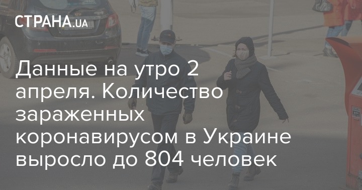 По данным ЦОЗ, по состоянию на 10:00 2 апреля в Украине 804 лабораторно подтвержденных случаев COVID-19, из них 20 летальных, 13 пациентов выздоровели. За сутки было зафиксировано 135 новых случаев.
