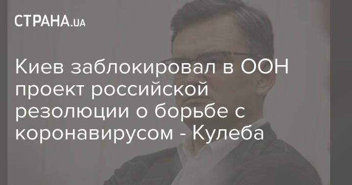 Глава украинского МИД Дмитрий Кулеба заявил, что официальный Киев поставил барьер для поданного Россией проекта резолюции Генеральной Ассамблеи ООН по борьбе с коронавирусом. Министр иностранных дел Украины утверждает, что в случае принятия этой резолюции, Кремль мог бы избавиться от международных санкций.