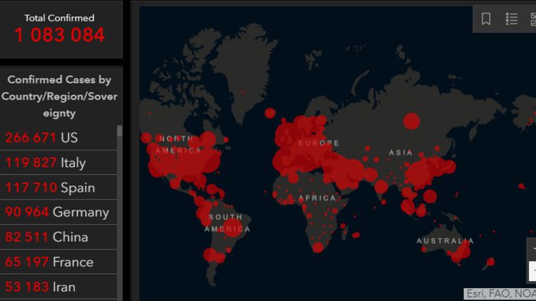 Статистика и карта зараженных новым вирусом на вечер пятницы. Фото: coronavirus.jhu.edu