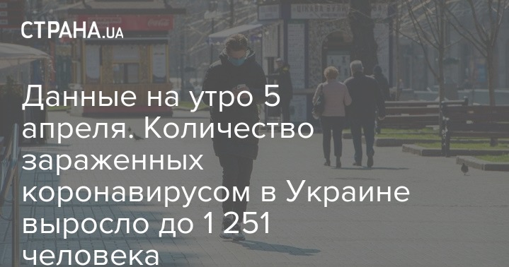 В Украине, по состоянию на утро 5 апреля, зафиксирован уже 1 251 случай заражения коронавирусной инфекцией Covid-19. За сутки выявлено 156 новых случаев заражения, а по данным на вечер субботы, 4 апреля, было зафиксировано 1 225 случаев коронавирусной болезни Covid-19